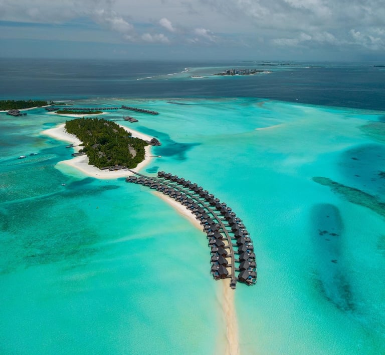 From above, the Maldives reveals its true form—a fragile necklace of coral atolls strewn across the deep indigo of the Indian Ocean. This is a landscape painted in fifty shades of blue, where the boundary between sea and sky dissolves into infinite azure.