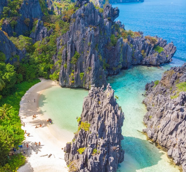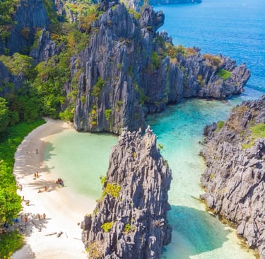 Glide through ancient limestone corridors on a traditional paraw boat. The turquoise waters of Palawan offer a sanctuary of silence, broken only by the gentle lap of waves against jagged cliffs that have stood sentinel for millennia.